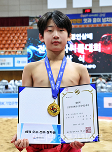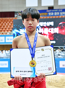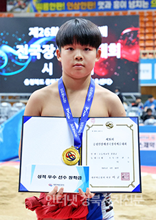 8 ÁõÆòÁ¾ÇÕ½ºÆ÷Ã÷¼¾ÅÍ¿¡¼ ¿¸° ¡®Á¦26ȸ ÁõÆòÀλï¹èÀü±¹Àå»ç¾¾¸§´ëȸ¡¯ ÃʵîºÎ ¿ª»ç±Þ(70kg ÀÌÇÏ)¿¡¼ 1À§¸¦ Â÷ÁöÇÑ À̵¿¿í(½Å¾îÃÊ)ÀÌ ±â³ä»çÁøÀ» Âï°í ÀÖ´Ù.