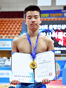 ÁõÆò±º ÁõÆòÁ¾ÇÕ½ºÆ÷Ã÷¼¾ÅÍ¿¡¼ ¿¸° ¡®Á¦26ȸ ÁõÆòÀλï¹èÀü±¹Àå»ç¾¾¸§´ëȸ¡¯ÃʵîºÎ Àå»ç±Þ(120kg ÀÌÇÏ)¿¡¼ 1À§¸¦ Â÷ÁöÇÑ Çã±æ³ç(ºÏ¼ºÃÊ)ÀÌ ±â³ä»çÁøÀ» Âï°í ÀÖ´Ù.