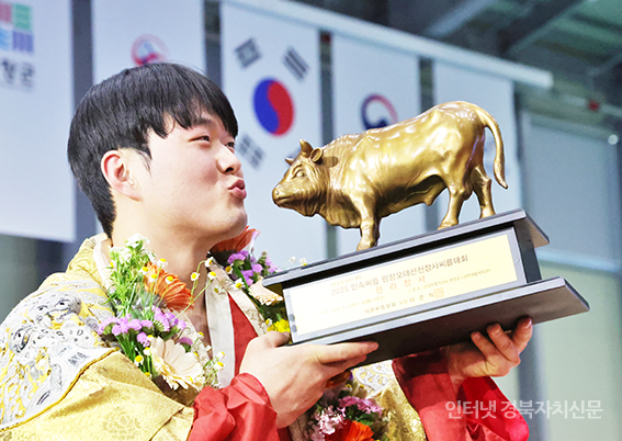 ÁøºÎ»ýȰüÀ°°ü¿¡¼ ¿¸° ¡®À§´õ½ºÁ¦¾à 2025 ¹Î¼Ó¾¾¸§ Æòâ¿À´ë»êõÀå»ç¾¾¸§´ëȸ¡¯ ÇѶóÀå»ç(105kgÀÌÇÏ)¿¡ µî±ØÇÑ ¹Ú¹Î±³(¿ëÀÎÆ¯·Ê½Ãû)°¡ Àå»ç²É°¡¸¶¸¦ Ÿ°í Àå»çÀÎÁõ¼¿Í Ȳ¼ÒÆ®·ÎÇǸ¦ µé°í ±â³ä»çÁøÀ» Âï°í ÀÖ´Ù.
