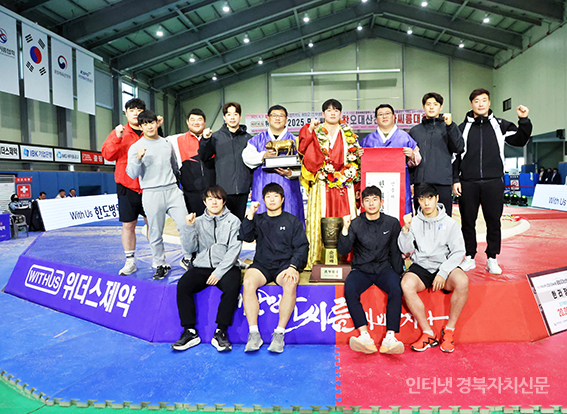 ÁøºÎ»ýȰüÀ°°ü¿¡¼ ¿¸° ¡®À§´õ½ºÁ¦¾à 2025 ¹Î¼Ó¾¾¸§ Æòâ¿À´ë»êõÀå»ç¾¾¸§´ëȸ¡¯ ÇѶóÀå»ç(105kgÀÌÇÏ)¿¡ µî±ØÇÑ ¹Ú¹Î±³(¿ëÀÎÆ¯·Ê½Ãû)°¡ Àå´öÁ¦ °¨µ¶(¿À¸¥ÂÊ ¼¼¹øÂ°), ¿ìÇü¿ø ÄÚÄ¡(¿ÞÂÊ ´Ù¼¸¹øÂ°) ±×¸®°í ÆÀ µ¿·áµé°ú ±â³ä»çÁøÀ» Âï°í ÀÖ´Ù.