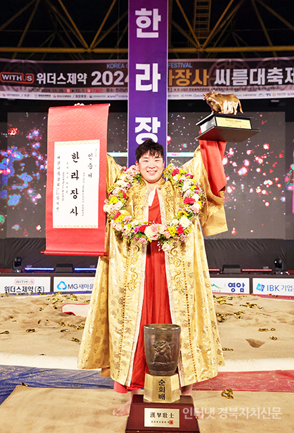 4 2024 õÇÏÀå»ç ¾¾¸§´ëÃàÁ¦' ÇѶóÀå»ç(105kg ÀÌÇÏ)¿¡ µî±ØÇÑ ±è¹«È£(¿ïÁÖ±ºÃ»)°¡ Àå»çÀÎÁõ¼¿Í Ȳ¼ÒÆ®·ÎÇǸ¦ µé°í Ȱ¦ ¿ô°í ÀÖ´Ù.