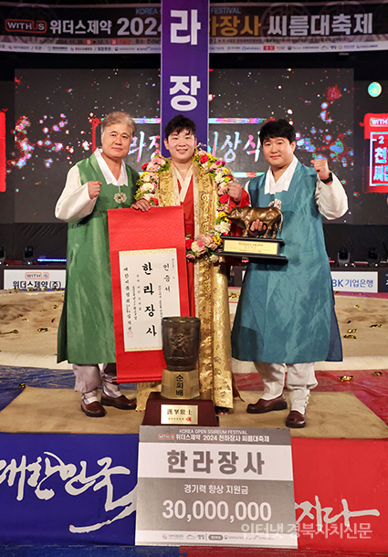 5 2024 õÇÏÀå»ç ¾¾¸§´ëÃàÁ¦' ÇѶóÀå»ç(105kg ÀÌÇÏ)¿¡ µî±ØÇÑ ±è¹«È£(¿ïÁÖ±ºÃ»)°¡ ÀÌ´ëÁø °¨µ¶(¿ì), ÀÌÁøÇü ÄÚÄ¡(ÁÂ)¿Í ±â³ä ÃÔ¿µÀ» Çϰí ÀÖ´Ù.