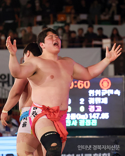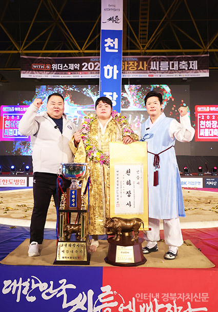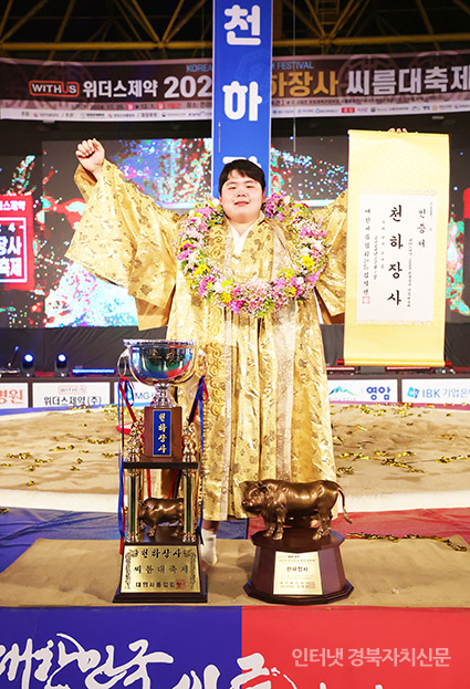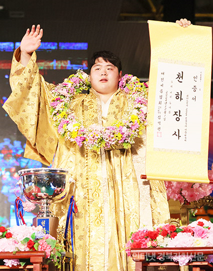 6 õÇÏÀå»ç ¾¾¸§´ëÃàÁ¦' õÇÏÀå»ç(140kg ÀÌÇÏ)¿¡ µî±ØÇÑ ±è¹ÎÀç(¿µ¾Ï±º¹Î¼Ó¾¾¸§´Ü)°¡ õÇÏÀå»ç Ȳ¼Ò Æ®·ÎÇÇ¿¡ ÀÔ ¸ÂÃß°í ÀÖ´Ù.