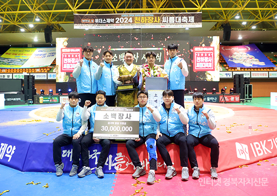 2024 õÇÏÀå»ç ¾¾¸§´ëÃàÁ¦' ¼Ò¹éÀå»ç(72kg ÀÌÇÏ)¿¡ µî±ØÇÑ È²Âù¼·(Á¦ÁÖÆ¯º°ÀÚÄ¡µµÃ»)ÀÌ Àå»ç²É°¡¸¶¿¡ ¿Ã¶ó Àå»çÀÎÁõ¼­¿Í Ȳ¼ÒÆ®·ÎÇǸ¦ µé°í ±â»µÇϰí ÀÖ´Ù.