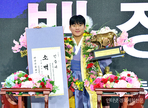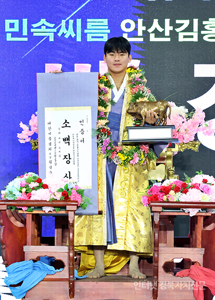 2024 ¹Î¼Ó¾¾¸§ Á¦4ȸ ¾È»ê±èÈ«µµ¿©ÀÚÀå»ç¾¾¸§´ëȸ' ¼Ò¹éÀå»ç¿¡ µî±ØÇÑ Àü¼º±Ù(¿µ¿ù±ºÃ»)ÀÌ Àå»çÀÎÁõ¼¿Í Ȳ¼ÒÆ®·ÎÇǸ¦ µé°í ±â³ä»çÁøÀ» Âï°í ÀÖ´Ù.