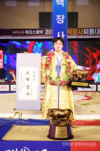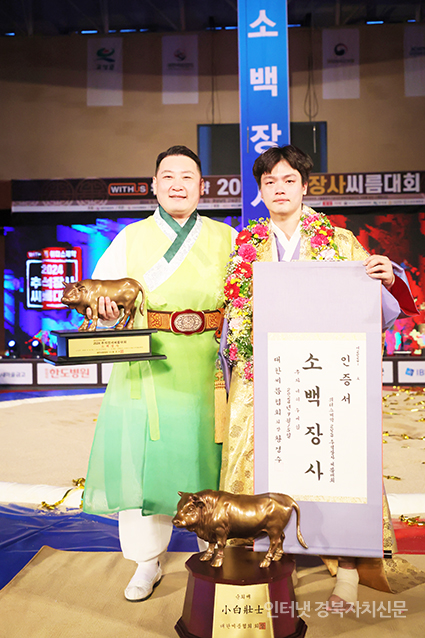 2024 Ãß¼®Àå»ç¾¾¸§´ëȸ¡¯ ¼Ò¹éÀå»ç(72kgÀÌÇÏ)¿¡ µî±ØÇÑ È²Âù¼·(Á¦ÁÖÆ¯º°ÀÚÄ¡µµÃ»)ÀÌ ²É°¡¸¶¿¡ ¿Ã¶óŸ Àå»çÀÎÁõ¼¿Í Ȳ¼ÒÆ®·ÎÇǸ¦ µé°í ±â³ä»çÁøÀ» Âï°í ÀÖ´Ù.