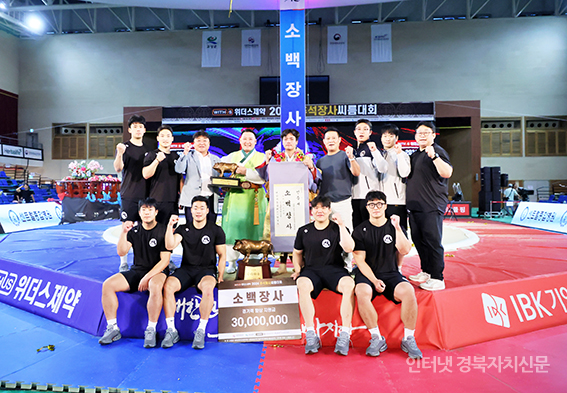 52024 Ãß¼®Àå»ç¾¾¸§´ëȸ¡¯ ¼Ò¹éÀå»ç(72kgÀÌÇÏ)¿¡ µî±ØÇÑ È²Âù¼·(Á¦ÁÖÆ¯º°ÀÚÄ¡µµÃ»)ÀÌ ¿ì½Â ÈÄ °´ë±Ô °¨µ¶°ú ±â»µÇϰí ÀÖ´Ù.