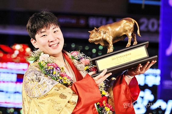 22024 Ãß¼®Àå»ç¾¾¸§´ëȸ¡¯ ÇѶóÀå»ç(105kgÀÌÇÏ)¿¡ µî±ØÇÑ ±è¹«È£(¿ïÁÖ±ºÃ»)°¡ Àå»çÀÎÁõ¼¿Í Ȳ¼ÒÆ®·ÎÇǸ¦ µé°í ±â³ä»çÁøÀ» Âï°í ÀÖ´Ù.