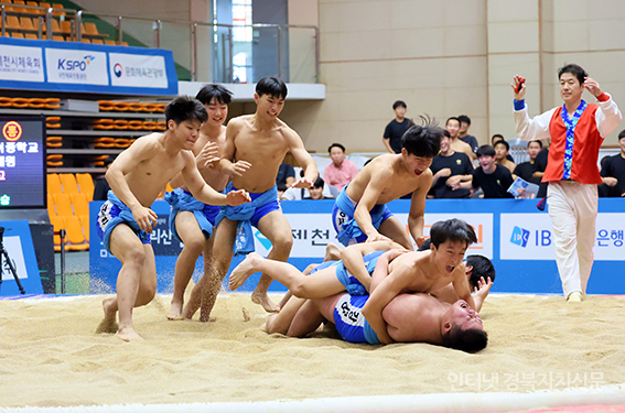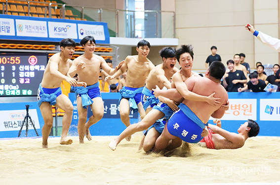 ¿©¼¸ ¹øÂ° ¿ª»ç±Þ(90kg ÀÌÇÏ) °æ±â¿¡¼ ½Å¾îÁßÇб³ ±èÁÖ¿øÀÌ ¶Ç´Ù½Ã µ¿Á¡À» ¸¸µé¾úÁö¸¸ Àå»ç±Þ(130kg ÀÌÇÏ) °¹Î»óÀÌ Àϰö ¹øÂ° °æ±â¿¡¼ µÎ ¹øÂ° ÆÇ°ú ¼¼ ¹øÂ° ÆÇ¿¡¼ ¿¬ÀÌ¾î µé¹èÁö±â¸¦ ¼º°ø½Ã۸ç 4-3À¸·Î °æ±â¸¦ ¸¶¹«¸®Áö¾ú´Ù.