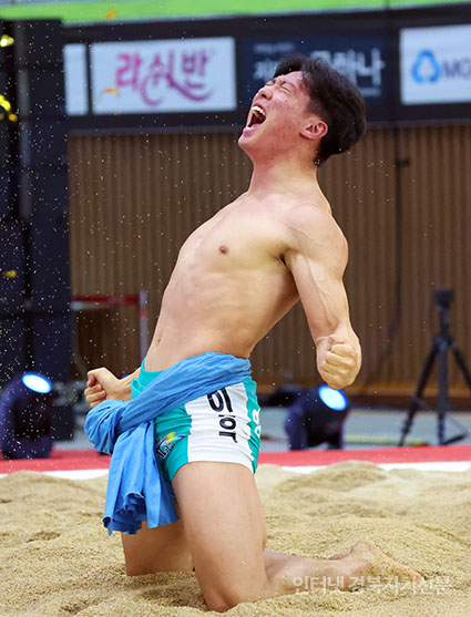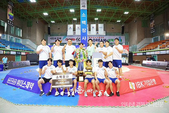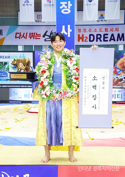 5¹Î¼Ó¾¾¸§ »ïôÀå»ç¾¾¸§´ëȸ¡¯ ¼Ò¹éÀå»ç(72kgÀÌÇÏ)¿¡ µî±ØÇÑ À̵¿Çõ(¿µ¾Ï±º¹Î¼Ó¾¾¸§´Ü)ÀÌ ¼Ò¹éÀå»ç ¼øÈ¸¹è¸¦ µé°í ±â³ä»çÁøÀ» Âï°í ÀÖ´Ù.