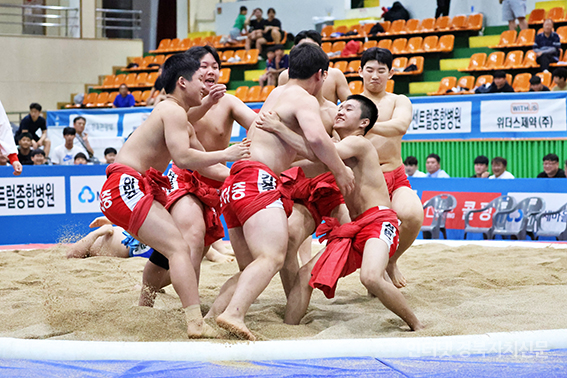 Àϰö ¹øÂ° °æ±â¿¡¼ ½Å¾îÁßÇб³ Àå»ç±Þ(130kg ÀÌÇÏ) ±èÁÖ¿øÀÌ ¹Ð¾îÄ¡±â¿Í ¾È´Ù¸® ±â¼úÀ» ¼º°ø½Ã۸ç ÃÖÁ¾½ºÄÚ¾î 4-3À¸·Î °æ±â¸¦ ¸¶¹«¸® Áö¾ú´Ù.