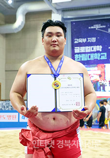 Ãáõ¼Ò¾ç°¹èÀü±¹Àå»ç¾¾¸§´ëȸ¡¯ ´ëÇб³ºÎ Àå»ç±Þ(140kg ÀÌÇÏ)¿¡¼ 1À§¸¦ Â÷ÁöÇÑ ±è¹ÎÈ£(°æ±â´ë)°¡ ¸Þ´ÞÀ» ¸Þ°í »óÀåÀ» µé°í ±â³ä»çÁøÀ» Âï°í ÀÖ´Ù.