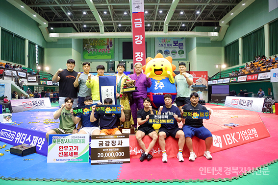 º¸Àº±º º¸Àº±¹¹ÎüÀ°¼¾ÅÍ¿¡¼ ¿¸° ¡®À§´õ½ºÁ¦¾à 2024 ¹Î¼Ó¾¾¸§ º¸ÀºÀå»ç¾¾¸§´ëȸ¡¯ ±Ý°Àå»ç(90kgÀÌÇÏ)¿¡ µî±ØÇÑ ³ë¹ü¼ö(¿ïÁÖ±ºÃ»)°¡ ¿ì½Â ÈÄ ±â»ÝÀ» Ç¥Çϰí ÀÖ´Ù.