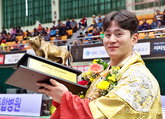 5 2024 ¹Î¼Ó¾¾¸§ º¸ÀºÀå»ç¾¾¸§´ëȸ¡¯ ÇѶóÀå»ç(105kgÀÌÇÏ)¿¡ µî±ØÇÑ Â÷¹Î¼ö(¿µ¾Ï±º¹Î¼Ó¾¾¸§´Ü)°¡ ¿ì½Â ÈÄ ±â»ÝÀ» Ç¥Çϰí ÀÖ´Ù.