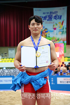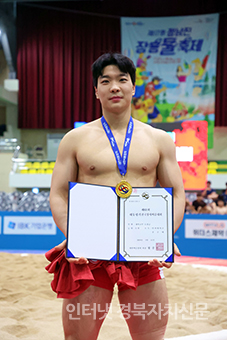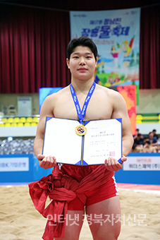 8 ¡®Á¦61ȸ ´ëÅë·É±âÀü±¹Àå»ç¾¾¸§´ëȸ' ´ëÇб³ºÎ Àå»ç±Þ(140kg ÀÌÇÏ)¿¡¼ 1À§¸¦ Â÷ÁöÇÑ È«ÁöÈç(¿µ³²´ë)ÀÌ ¸Þ´ÞÀ» ¸Þ°í »óÀåÀ» µé°í ±â³ä»çÁøÀ» Âï°í ÀÖ´Ù.