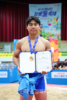 3 ¡®Á¦61ȸ ´ëÅë·É±âÀü±¹Àå»ç¾¾¸§´ëȸ' ´ëÇб³ºÎ ¼ÒÀå±Þ(80kg ÀÌÇÏ)¿¡¼ 1À§¸¦ Â÷ÁöÇÑ ±èÁØÅÂ(ÀÎÇÏ´ë)°¡ ¸Þ´ÞÀ» ¸Þ°í »óÀåÀ» µé°í ±â³ä»çÁøÀ» Âï°í ÀÖ´Ù.