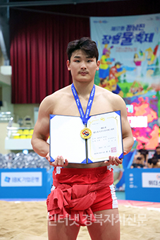 4 ¡®Á¦61ȸ ´ëÅë·É±âÀü±¹Àå»ç¾¾¸§´ëȸ' ´ëÇб³ºÎ ûÀå±Þ(85kg ÀÌÇÏ)¿¡¼ 1À§¸¦ Â÷ÁöÇÑ Á¤¼ºÀç(µ¿¾Æ´ë)°¡ ¸Þ´ÞÀ» ¸Þ°í »óÀåÀ» µé°í ±â³ä»çÁøÀ» Âï°í ÀÖ´Ù.
