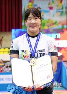 ÀåÈﱺ ÀåÈï½Ç³»Ã¼À°°ü¿¡¼­ ¿­¸° ¡®Á¦61ȸ ´ëÅë·É±âÀü±¹Àå»ç¾¾¸§´ëȸ¡¯ ¿©ÀںΠ¸ÅÈ­±Þ(60kgÀÌÇÏ)¿¡¼­ 1À§¸¦ Â÷ÁöÇÑ ±è½Ã¿ì(±¸·Ê±ºÃ»)°¡ ¸Þ´ÞÀ» ¸Þ°í »óÀåÀ» µé°í ±â³ä»çÁøÀ» Âï°í ÀÖ´Ù.