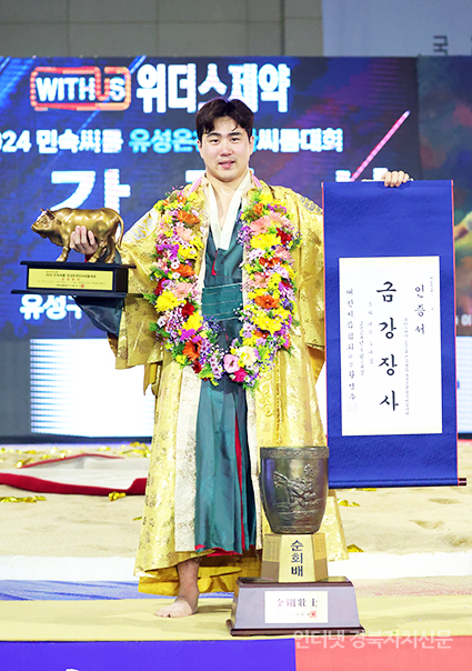 2024 ¹Î¼Ó¾¾¸§ À¯¼º¿ÂõÀå»ç¾¾¸§´ëȸ¡¯ ±Ý°­Àå»ç(90kgÀÌÇÏ)¿¡ µî±ØÇÑ Á¤Á¾Áø(¿ïÁÖ±ºÃ»)ÀÌ ¿ì½Â ÈÄ ±â»ÝÀ» Ç¥Çϰí ÀÖ´Ù