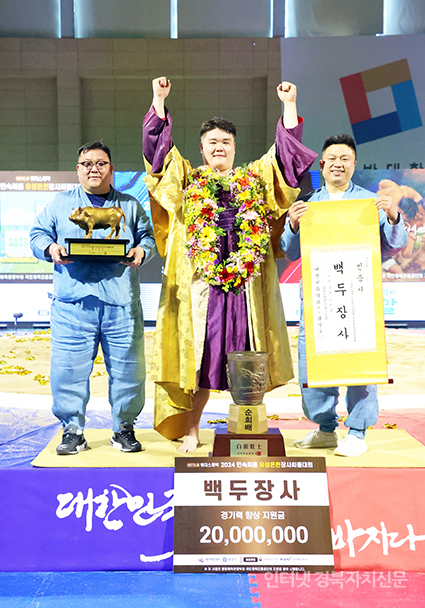 ¹Î¼Ó¾¾¸§ À¯¼º¿ÂõÀå»ç¾¾¸§´ëȸ¡¯ ¹éµÎÀå»ç(140kgÀÌÇÏ)¿¡ µî±ØÇÑ À强¿ì(MG»õ¸¶À»±Ý°í¾¾¸§´Ü)°¡ ¿ì½Â ÈÄ ±â»ÝÀ» Ç¥Çϰí ÀÖ´Ù.