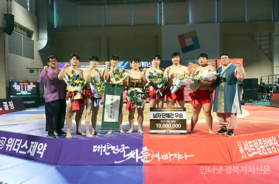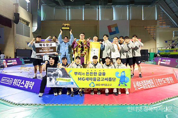 ¹Î¼Ó¾¾¸§ À¯¼º¿ÂõÀå»ç¾¾¸§´ëȸ¡¯ ³²ÀںΠ´ÜüÀü¿¡ ¿ì½ÂÀ» Â÷ÁöÇÑ ¿ëÀÎÆ¯·Ê½Ãû(°æ±âµµ)ÀÌ Àå´öÁ¦ °¨µ¶(ÀÁÙ ¿À¸¥ÂÊ Ã¹¹øÂ°)°ú ¿ìÇü¿ø ÄÚÄ¡(ÀÁÙ ¿ÞÂÊ Ã¹¹øÂ°)¿Í ÆÀ µ¿·áµé°ú ±â³ä»çÁøÀ» Âï°í ÀÖ´Ù.
