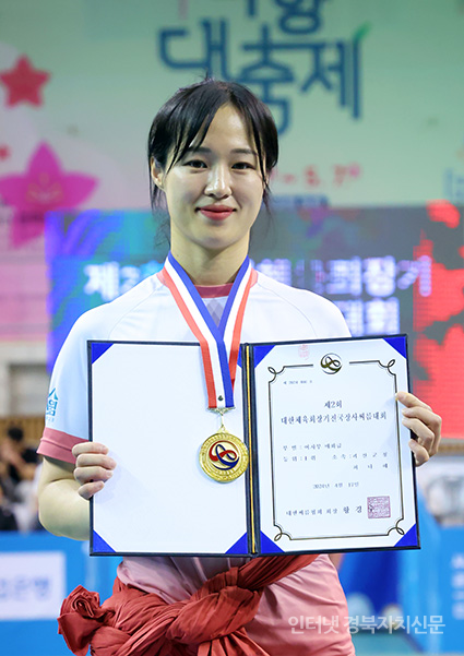 4 ¡®Á¦2ȸ ´ëÇÑüÀ°È¸Àå±âÀü±¹Àå»ç¾¾¸§´ëȸ¡¯ ¿©ÀںΠ¹«±ÃȱÞ(80kgÀÌÇÏ)¿¡¼ 1À§¸¦ Â÷ÁöÇÑ ±è´Ù¿µ(±«»ê±ºÃ»)ÀÌ ¸Þ´ÞÀ» ¸Þ°í »óÀåÀ» µé°í ±â³ä»çÁøÀ» Âï°í ÀÖ´Ù.