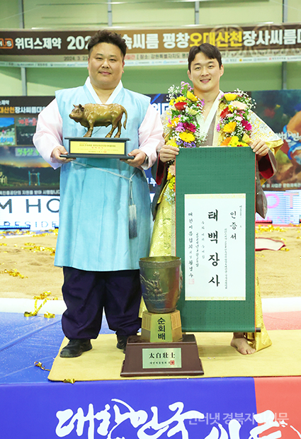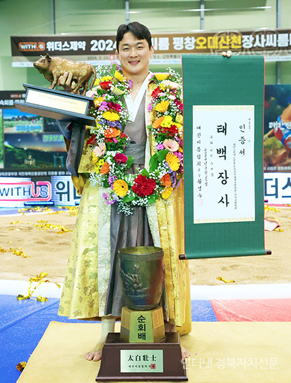 Æòⱺ ÁøºÎ»ýȰüÀ°°ü¿¡¼ ¿¸° ¡®À§´õ½ºÁ¦¾à 2024 ¹Î¼Ó¾¾¸§ Æòâ¿À´ë»êõÀå»ç¾¾¸§´ëȸ¡¯ ŹéÀå»ç(80kgÀÌÇÏ)¿¡ µî±ØÇÑ ¹®Áؼ®(¼ö¿øÆ¯·Ê½Ãû)ÀÌ Àå»çÀÎÁõ¼¿Í Ȳ¼ÒÆ®·ÎÇǸ¦ µé°í ±â³ä»çÁøÀ» Âï°í ÀÖ´Ù.