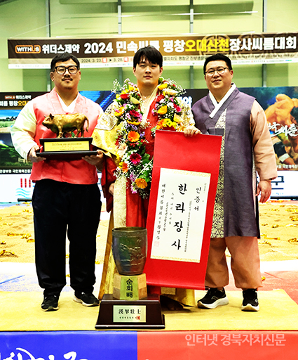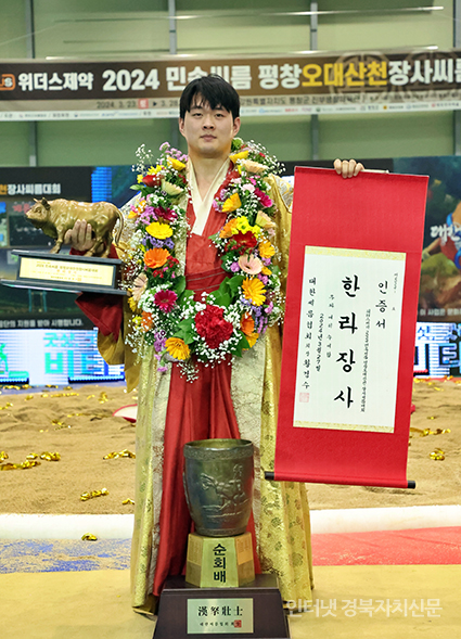1Æòⱺ ÁøºÎ»ýȰüÀ°°ü¿¡¼ ¿¸° ¡®À§´õ½ºÁ¦¾à 2024 ¹Î¼Ó¾¾¸§ Æòâ¿À´ë»êõÀå»ç¾¾¸§´ëȸ¡¯ ÇѶóÀå»ç(105kgÀÌÇÏ)¿¡ µî±ØÇÑ ¹Ú¹Î±³(¿ëÀÎÆ¯·Ê½Ãû)°¡ Àå»çÀÎÁõ¼¿Í Ȳ¼ÒÆ®·ÎÇǸ¦ µé°í ±â³ä»çÁøÀ» Âï°í ÀÖ´Ù.