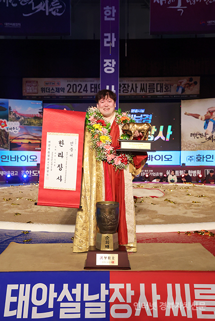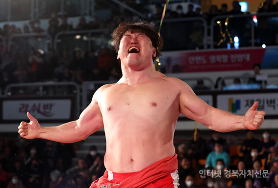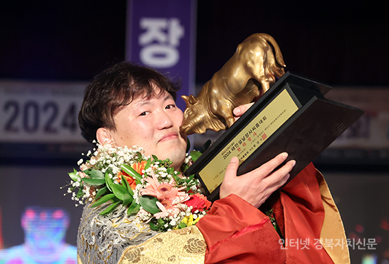 žȼ³³¯Àå»ç¾¾¸§´ëȸ¡¯ ÇѶóÀå»ç(105kgÀÌÇÏ)¿¡ µî±ØÇÑ ±èº¸°æ(¹®°æ½Ãû)ÀÌ ¿ì½Â ÈÄ ±â»ÝÀ» Ç¥Çϰí ÀÖ´Ù
