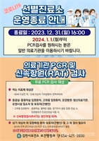 ¼±º°Áø·á¼ÒÁ¾·á-º¸°ÇÇàÁ¤°ú(¾È³»¹®)12¿ù 31ÀÏ Äڷγª19 ¼±º°Áø·á¼Ò ¿î¿µ Á¾·á±èõ½Ã´Â Äڷγª19 ´ëÀÀü°è °³Æí¿¡ µû¶ó ÀÌ´Þ 31ÀÏÀ» ³¡À¸·Î º¸°Ç¼Ò Äڷγª19...