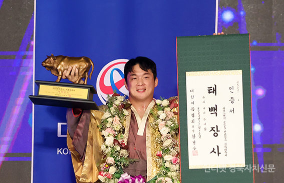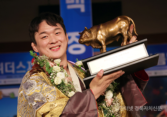 °í¼º±º °í¼º±º±¹¹ÎüÀ°¼¾ÅÍ¿¡¼ ¿¸° 'À§´õ½ºÁ¦¾à 2023 õÇÏÀå»ç ¾¾¸§´ëÃàÁ¦' ŹéÀå»ç(80kg ÀÌÇÏ)¿¡ µî±ØÇÑ ¹®Áؼ®(¼ö¿øÆ¯·Ê½Ãû)ÀÌ Àå»ç²É°¡¸¶¸¦ Ÿ°í Àå»çÀÎÁõ¼¿Í Ȳ¼ÒÆ®·ÎÇǸ¦ µé°í ±â³ä»çÁøÀ» Âï°í ÀÖ´Ù.