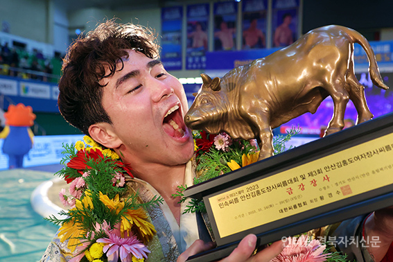 4¹Î¼Ó¾¾¸§ ¾È»ê±èÈ«µµÀå»ç¾¾¸§´ëȸ¡¯ ±Ý°Àå»ç(90kgÀÌÇÏ)¿¡ µî±ØÇÑ Á¤Á¾Áø(¿ïÁÖ±ºÃ»)ÀÌ ¿ì½ÂÀ» È®Á¤ÇÑ ÈÄ ±â»µÇϰí ÀÖ´Ù.